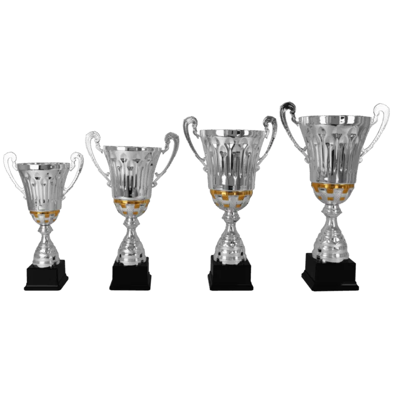 De bekers zijn in 4 verschillende maten verkrijgbaar. Het zijn wat hogere bekers. Bestaande uit een voet voor eventueel een label met tekst. Er zitten leuke details in de beker verwerkt. De beker is verkrijgbaar in de kleur zilver. Ze zijn in combinatie te bestellen ,maar kunnen ook apart worden besteld.