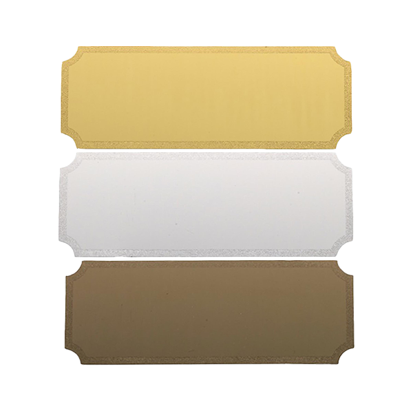 Gegraveerde metalen plaatje in standaard formaat 6,2 bij 2.4 cm. In de kleur goud of zilver of brons. De plaatjes worden voorzien aan de achterzijde met dubbelzijdig tape zodat u ze zelf kunt opplakken.