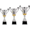 De trofee zijn er in 3 verschillende kleuren. De bekers hebben alle 3 verschillende afmetingen. Het zijn wat hogere trofeeén. Bestaande uit een voet voor eventueel een label met tekst en plaats voor een afslag. Ook zitten er leuke details in de trofee verwerkt. De trofee is verkrijgbaar in de kleuren goud, zilver en brons. Ze zijn in combinatie te bestellen ,maar kunnen ook apart worden besteld.