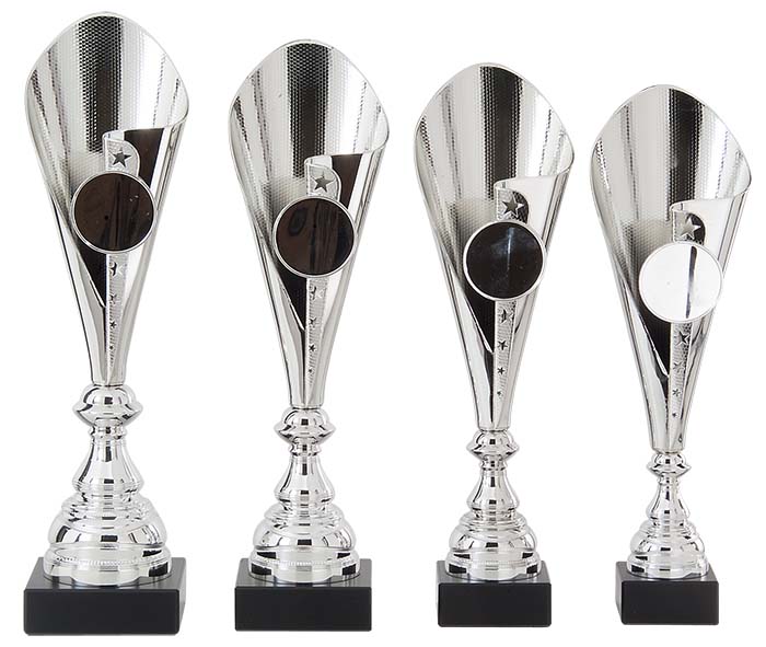 Zilverkleurig trofee. De trofee is mooi bewerkt met sterren en is te gebruiken voor iedere hobby of sport. Op de voet is er plaats voor een goud of zilverkleurige label met tekst. Ook is er aan de bovenzijde ruimte voor een afbeelding. De beker is verkrijgbaar in 4 verschillende afmetingen.