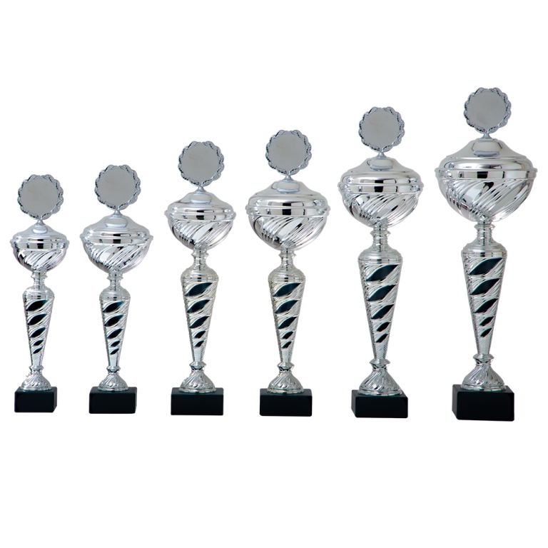 De zilverkleurige bokaal beker zijn afgewerkt met zwarte details en zijn er in 6 verschillende afmetingen. Bestaande uit een voet voor eventueel een label met tekst. Ook zitten er leuke details in de bokaal verwerkt. De beker is ook aan te passen naar u eigen hobby of sport door middel van een afbeelding op de bovenzijde van de beker. Ze zijn in combinatie te bestellen ,maar kunnen ook apart worden besteld.